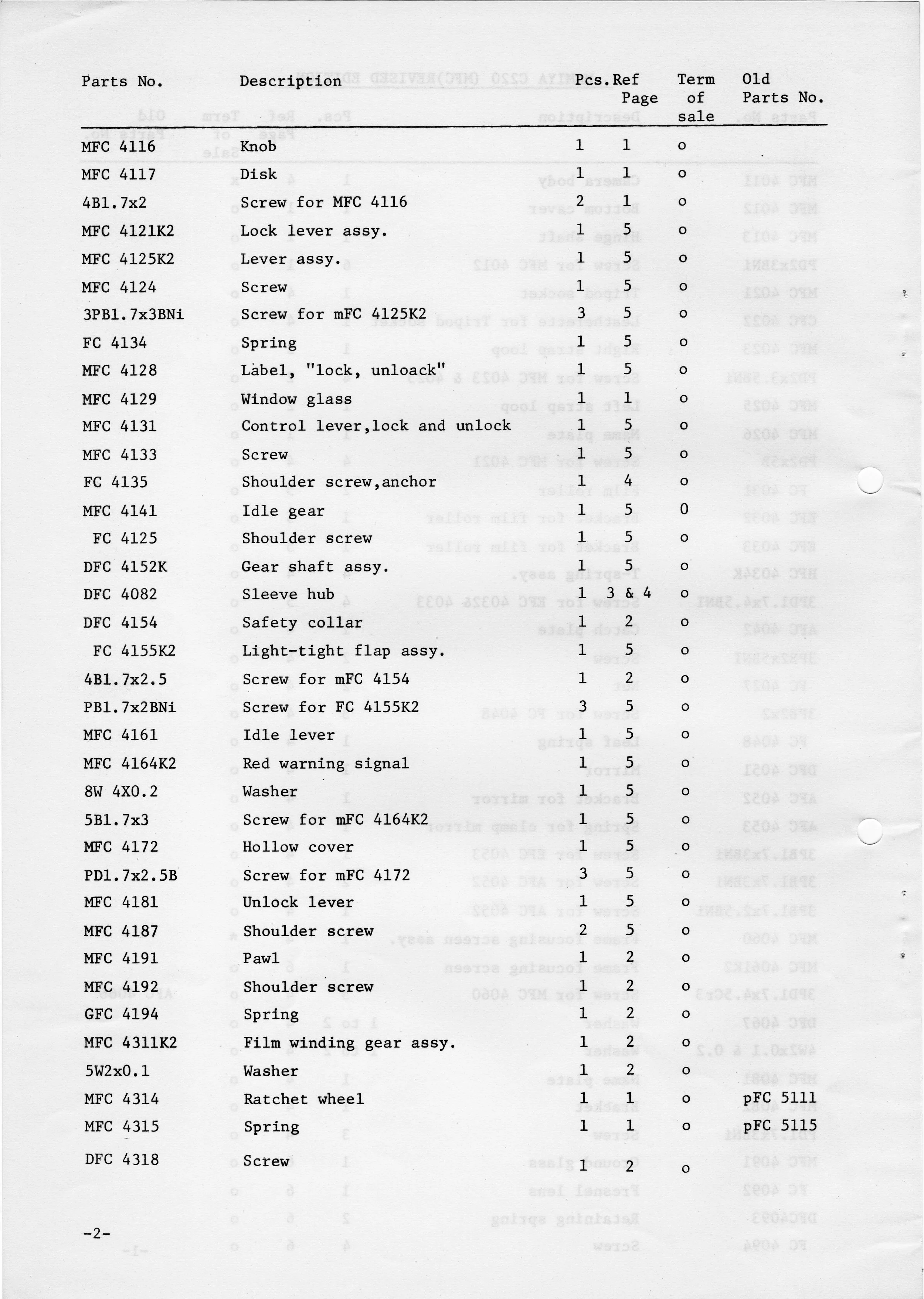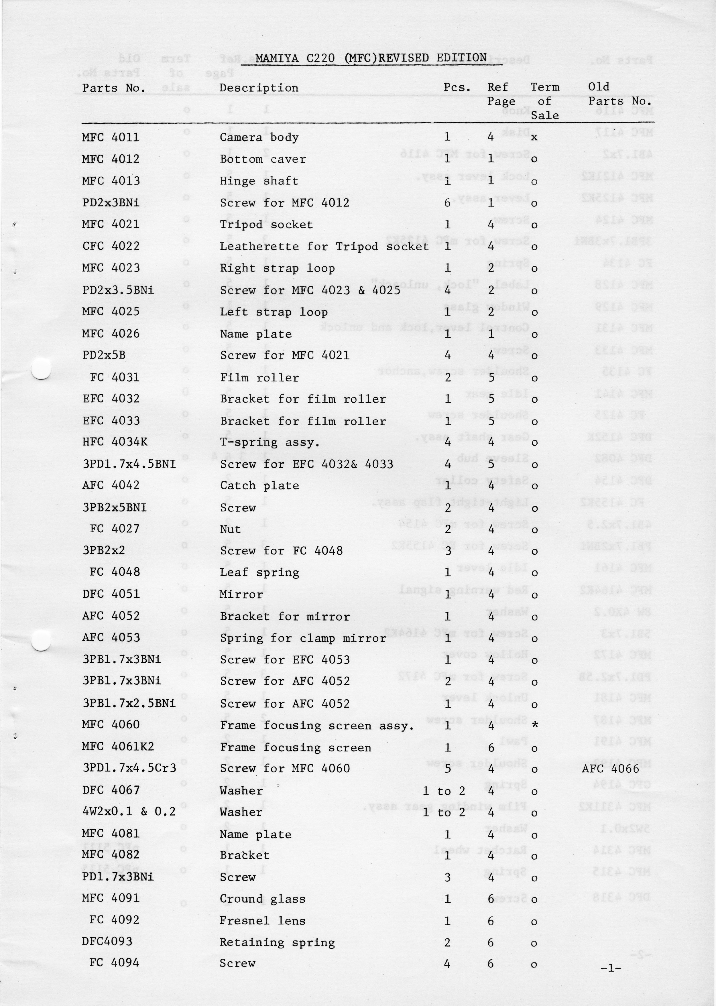 Mamiya C220 Exploded Diagram and Parts Catalog, August 1975 Nov 3 Written By greg c Parts Catalog and Exploded Diagram greg c